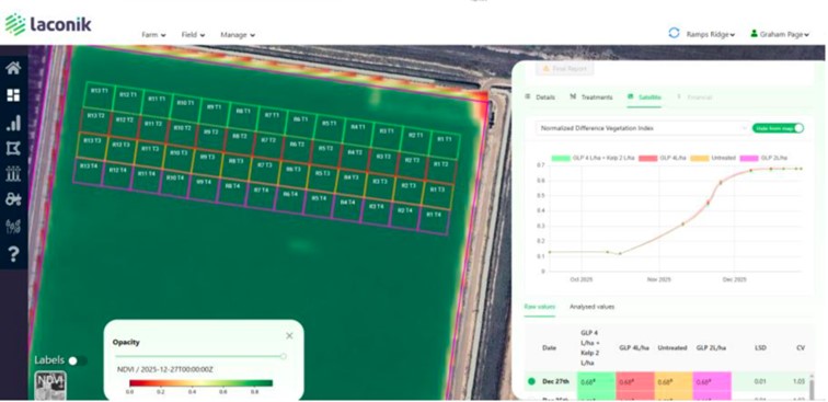 A paddock-scale maize silage demonstration used remote sensing technology to assess crop health, yield and feed quality across multiple replicated treatments, providing high-resolution insights into GLP performance.
